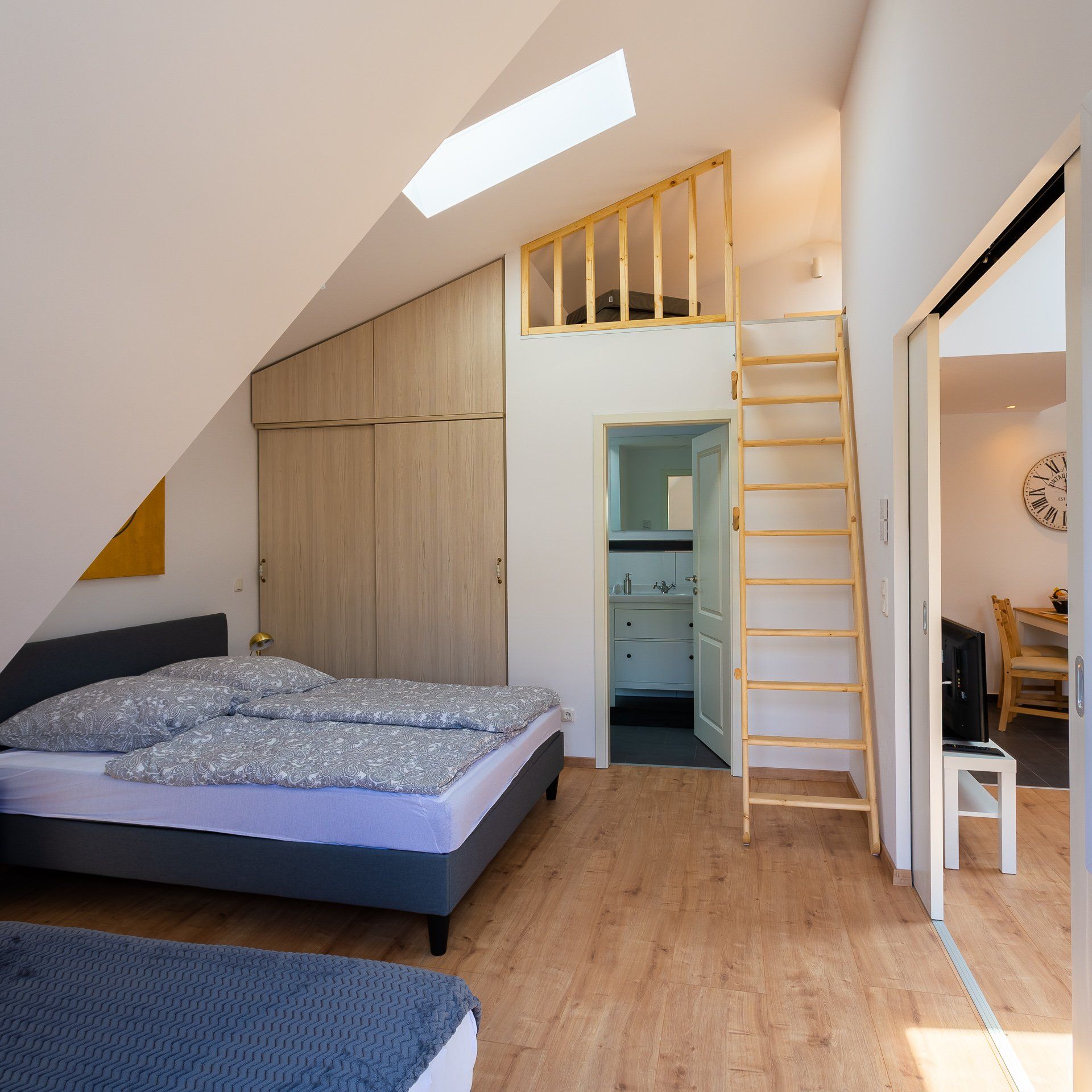 Mit jeweils 45 m² sind die Wohnungen 'Lieblingsplatz' und 'VIP-Lounge' hochwertig ausgestattet und bestehen aus Wohnzimmer, Schlafzimmer, offener Küche, Tageslichtbad, Balkon und einer Empore als Schlafmöglichkeit für Kinder und auch für junge Erwachsene.